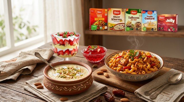 Kheer, Sheer Khurma Mix, Custard, and Jelly make Raizo a dependable choice for sweet dishes at home.